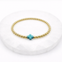 Gold beaded bracelet with a turquoise cross charm on a white background